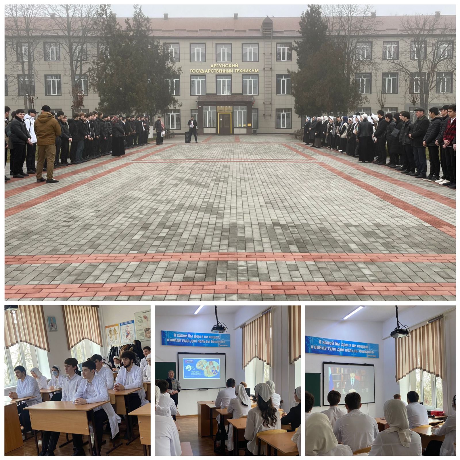 06.03.2023Учебная неделя в техникуме началась с поднятия государственных флагов РФ и ЧР. После завершения линейки,в стенах техникума прошло занятие по теме «ГОД ПЕДАГОГА И НАСТАВНИКА» Цель занятия: формирование представления у обучающихся о значимой роли учителя в становлении личности каждого человека; формирование у обучающихся чувства благодарности и уважения к родителям, педагогам, наставникам; понимания, что служение Отечеству проявляется, в числе прочего, и в форме наставничества; представления о качествах, которые необходимы тому, кого можно назвать наставником.