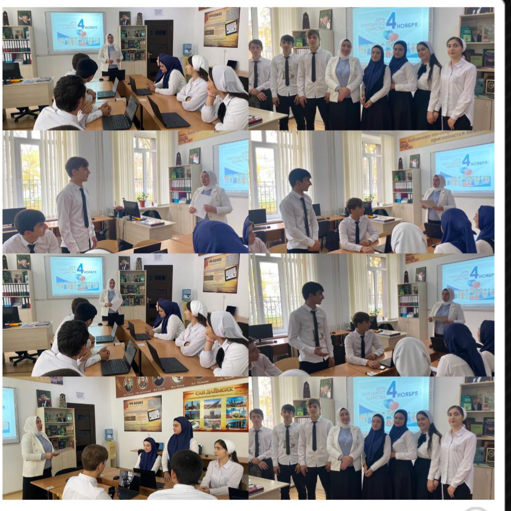 02.11.20244 ноября наша страна отмечает День народного единства. В современной России его начали праздновать сравнительно недавно - в 2005 году, тогда центром торжеств стал Нижний Новгород, где был открыт памятник Минину и Пожарскому. Сегодня в стенах ГБПОУ «Аргунский государственный техникум» в честь предстояшего праздника, советник директора по воспитанию Джабраилова Л.М. провела с обучающимися техникума, тематическую беседу «День народного единства» а также игру на тему «Что я знаю о России». Базовые национальные ценности, на развитие которых направлено содержание федеральной концепции: высокие нравственные идеалы, патриотизм, гражданственность, историческая память, социальная солидарность, взаимопомощь и взаимоуважение, единство