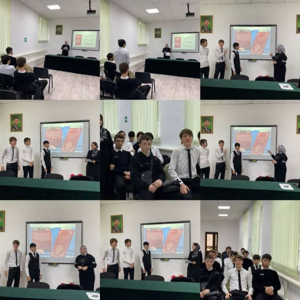12.12.2024День Конституции Российской Федерации – одна из значимых памятных дат, которая отмечается ежегодно 12 декабря с 2005 года. Конституция - прочный фундамент демократического развития российского государства. Конституция для гражданина - Закон, который он должен знать в первую очередь, так как знание и грамотное применение законов - норма цивилизованной жизни, мощный рычаг для повышения её качества. Советник директора по воспитанию и взаимодействию с детскими общественными объединениями ГБПОУ «Аргунский государственный техникум» Джабраилова Л.М.,в честь памятной даты провела мероприятие(кинолекторий «Азбука права») с студентами 2-х курсов,с последующим обсуждением в формате открытого диалога. Цель мероприятия:проявлять готовность к выполнению обязанностей гражданина России, реализации своих гражданских прав и свобод при уважении прав и свобод, законных интересов других людей.
