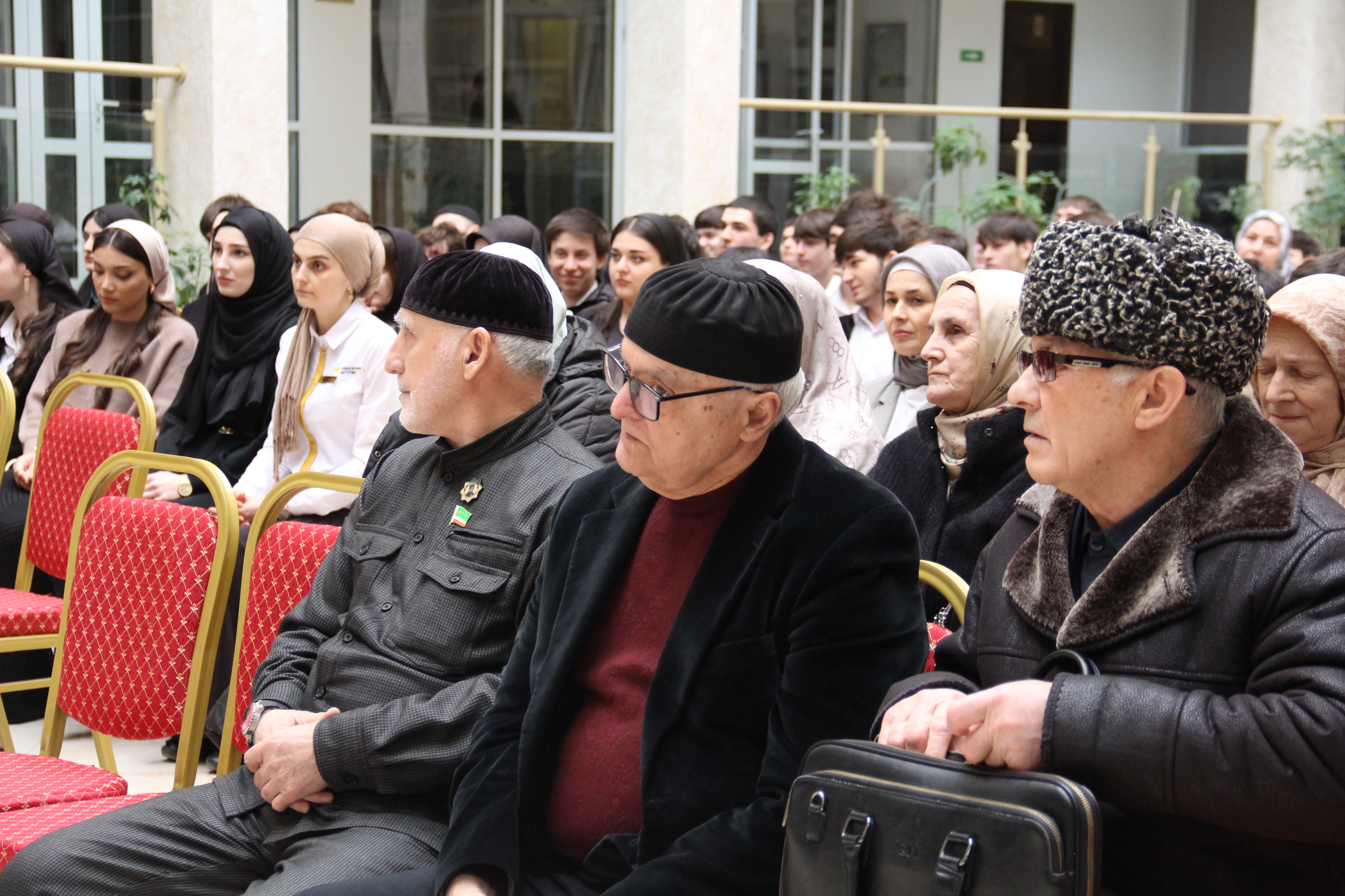 В мероприятии приняли участие члены Сюза писателей ЧР Х. Борхаджиев, А. Гакаев, С. Исраилов, М. Сакаева, Р. Дахаева, З. Эльдарханова, народные артисты ЧР С. Межидов и М. Яасаев, а также студенты Чеченского государственного колледжа.